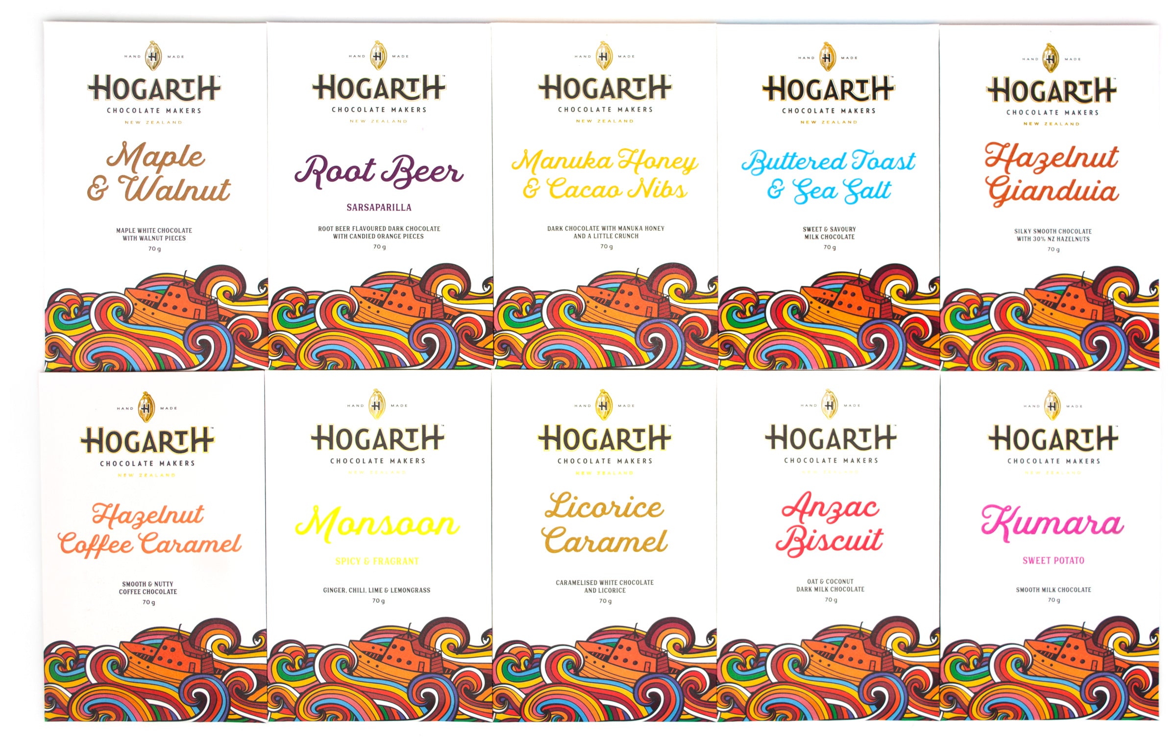 Hogarth sources the highest quality cacao beans from around the world to create small batches of chocolate using traditional techniques. Their small factory is located in Nelson, New Zealand where they sort, roast, crush and classify, winnow, grind and conche, age, melt, temper, mold, and wrap all by hand. Their process uses minimal ingredients and is focused on preserving the natural flavors within the cacao to create a chocolate with a true cacao flavor, a flavor lost in industrialized processing.