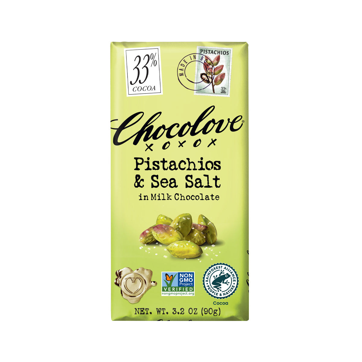 Chocolove Pistachios & Sea Salt in 33% Milk Chocolate Bar - 90g